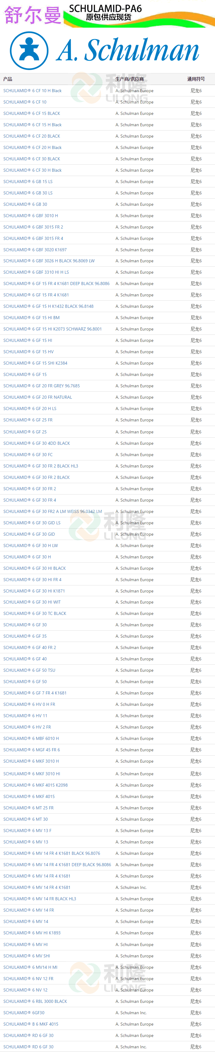>> 美國(guó)舒爾曼SCHULAMID品牌聚酰胺尼龍PA6塑膠原料