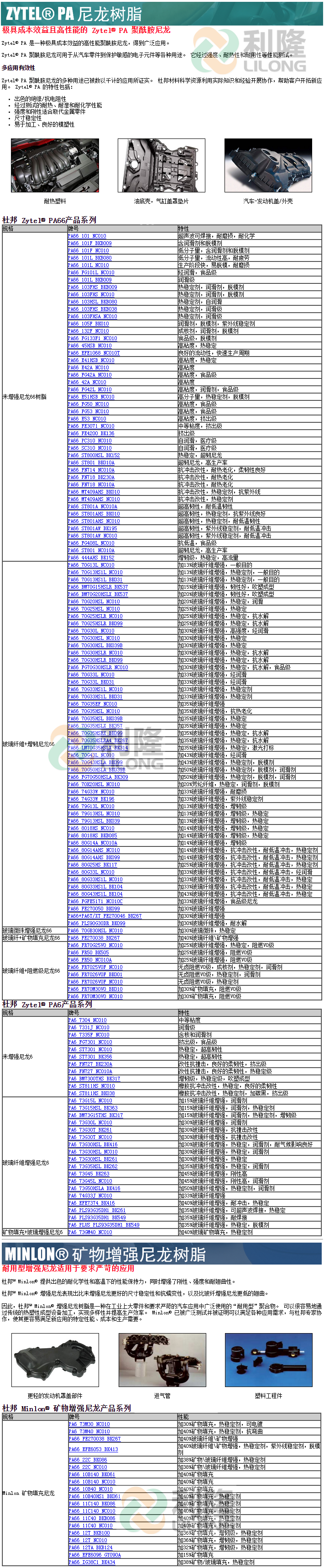 >> 美國杜邦ZYTEL品牌聚酰胺尼龍PA66塑膠原料