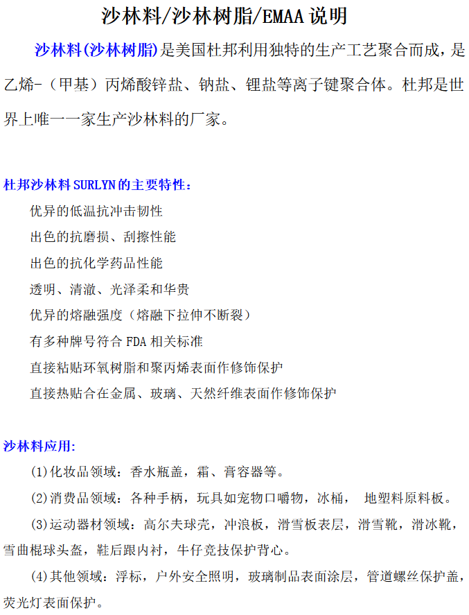 美國杜邦SURLYN(沙林料)EMAA工程塑料型號(hào):