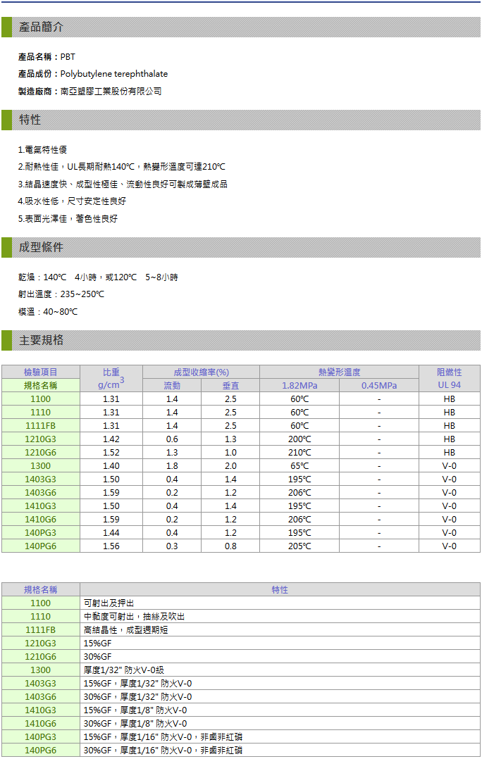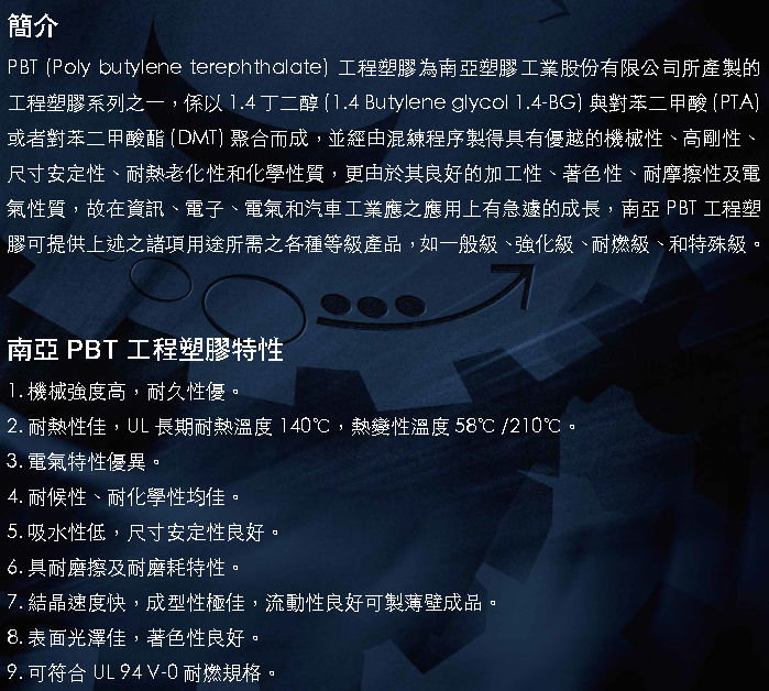 >> 南亞NANYA聚酯系列PBT工程塑料