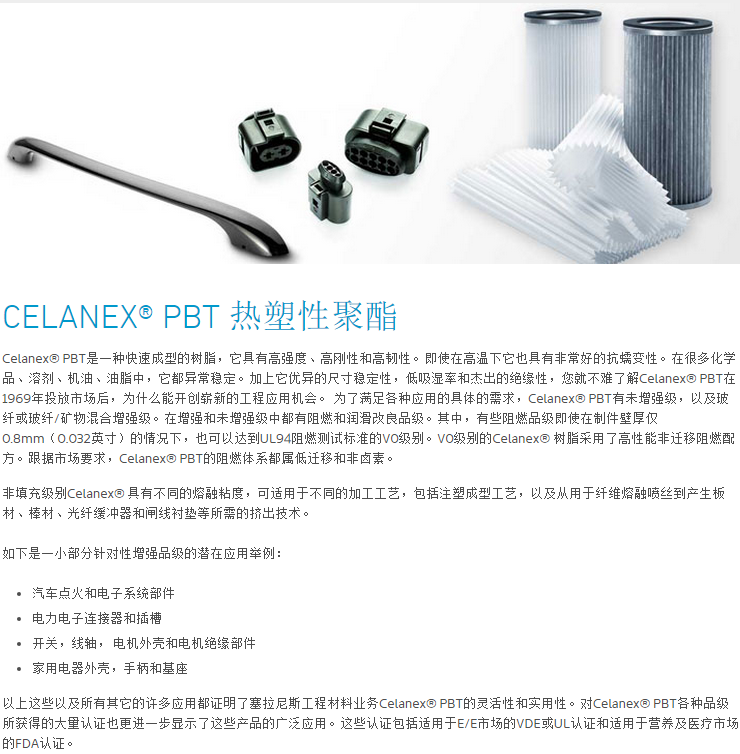>> 美國泰科納CELANEX品牌系列PBT塑膠原料