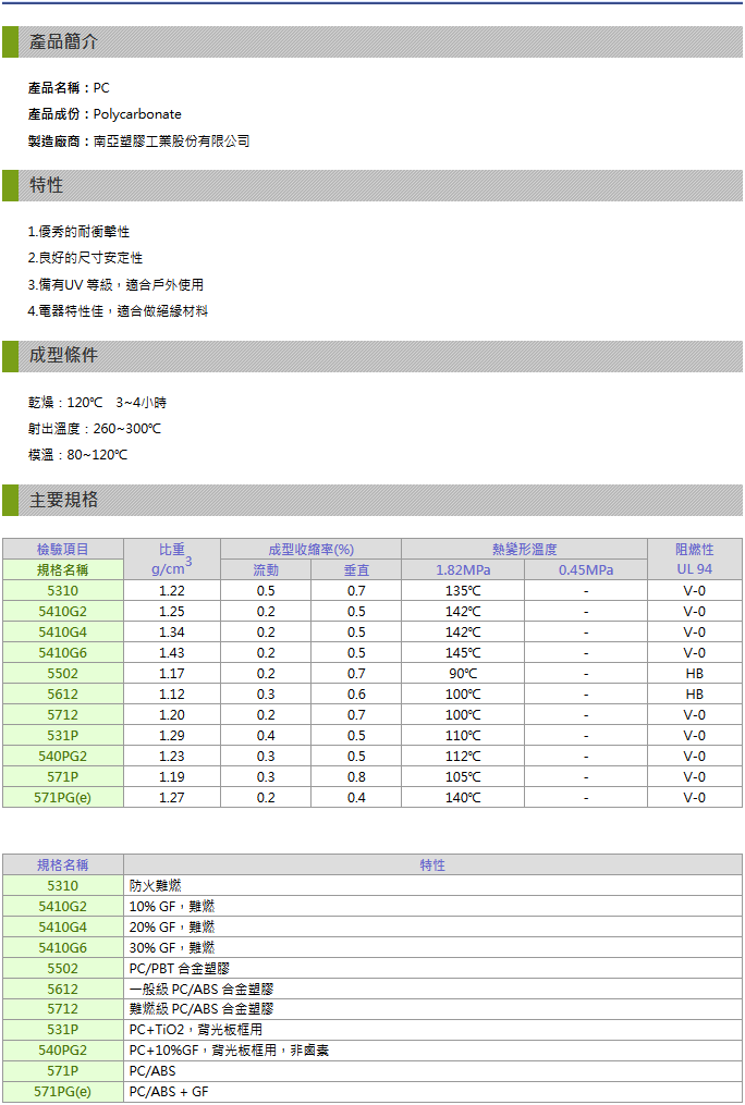 >> 南亞NANYA系列聚碳酸脂PC塑膠原料