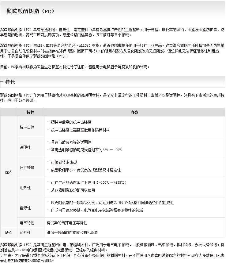 >> 日本出光TARFLON系列聚碳酸脂PC塑膠原料