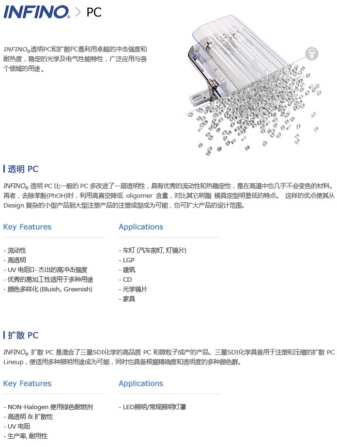 >> 韓國三星第一毛織INFINO系列PC工程塑料