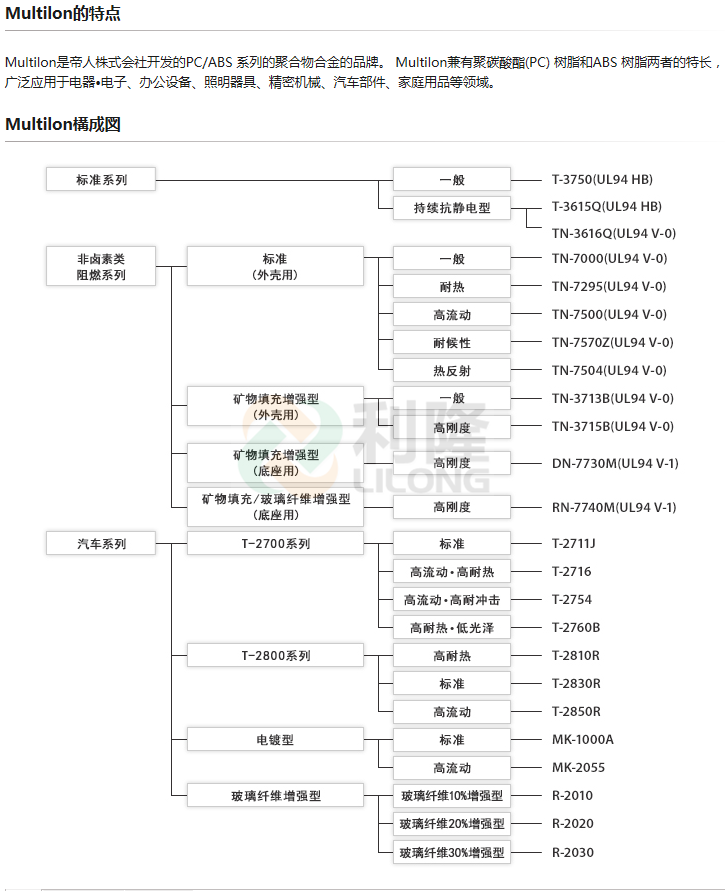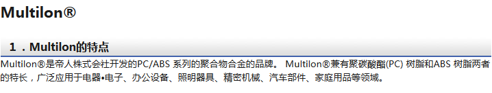 >> 日本帝人Multilon系列PC/ABS塑膠原料