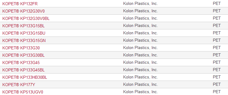 >> 韓國(guó)可隆KOPET品牌系列PET工程塑料