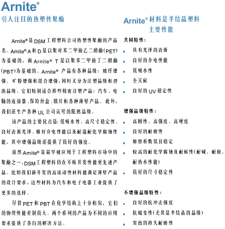 >> 荷蘭DSM帝斯曼ARNITE系列PET塑膠原料