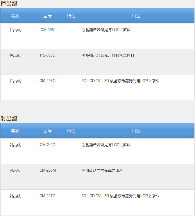 >> 臺(tái)灣奇美ACRYREX系列PMMA塑膠原料